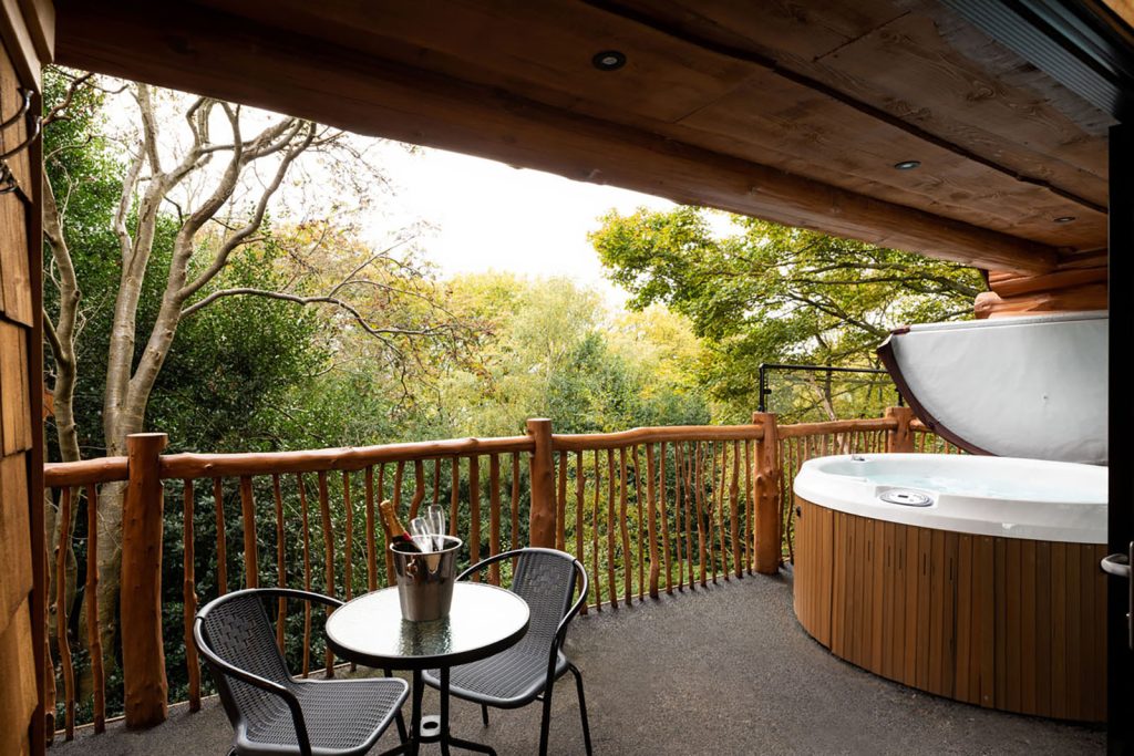 Large sliding glass doors open on to private decking with hot tub and sauna.