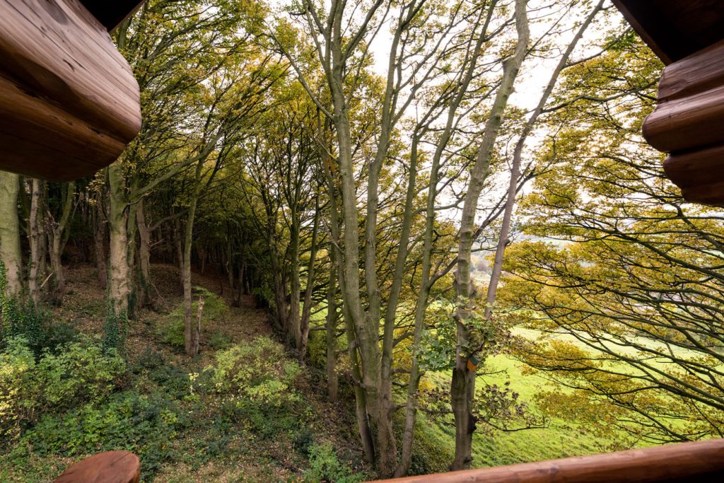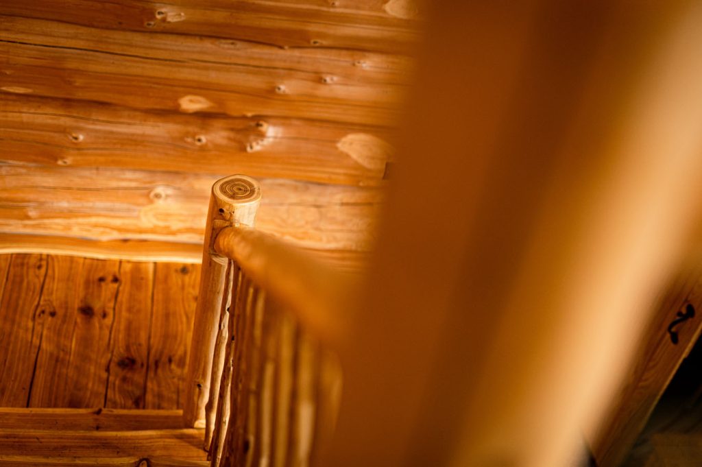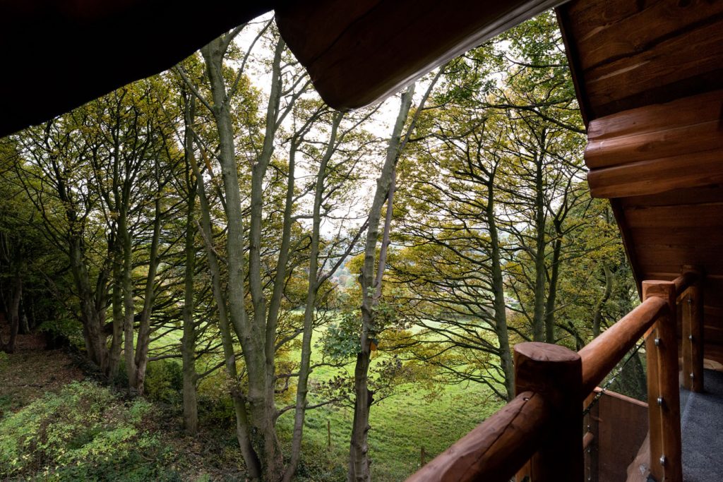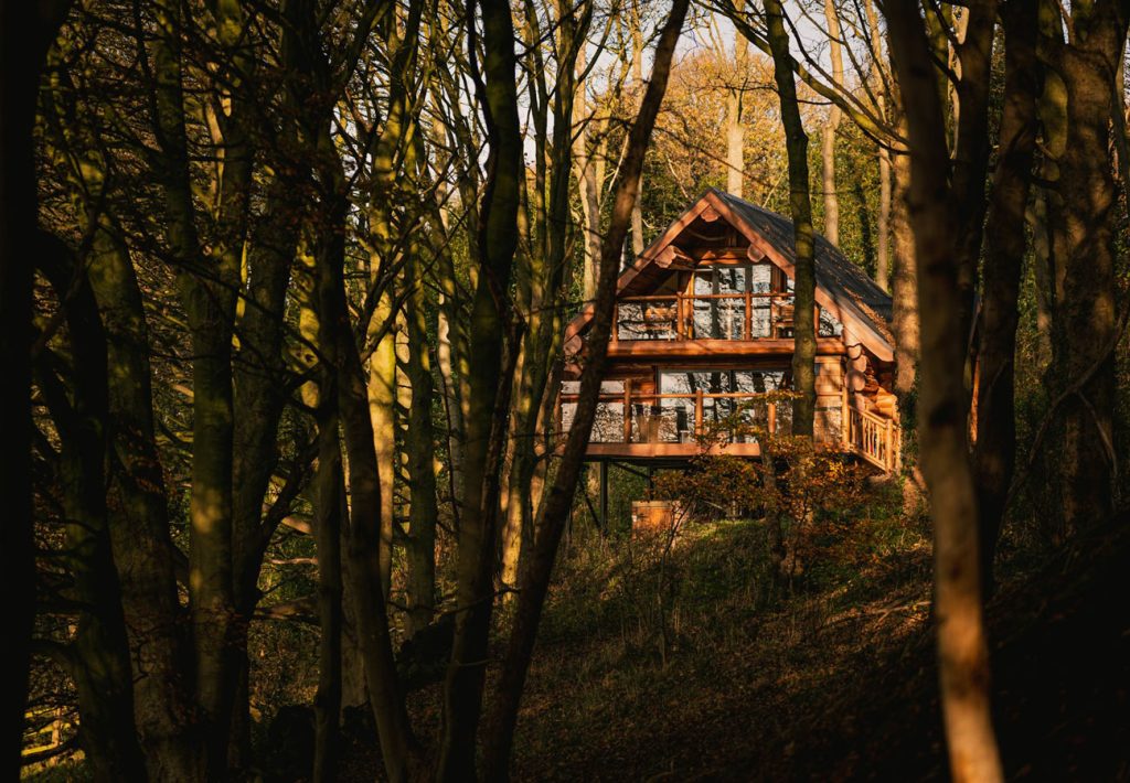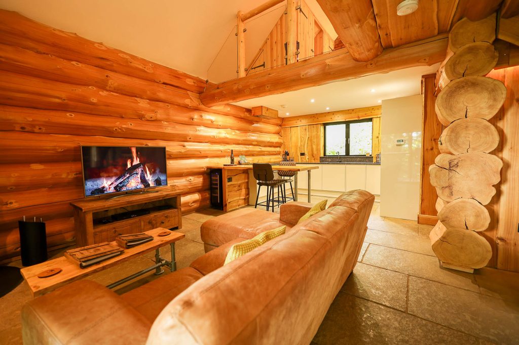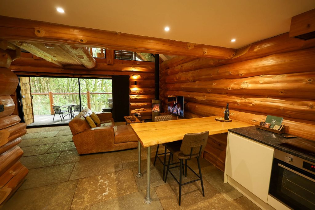 Apricity is a two storey rustic log cabin sleeping two adults with woodland views.