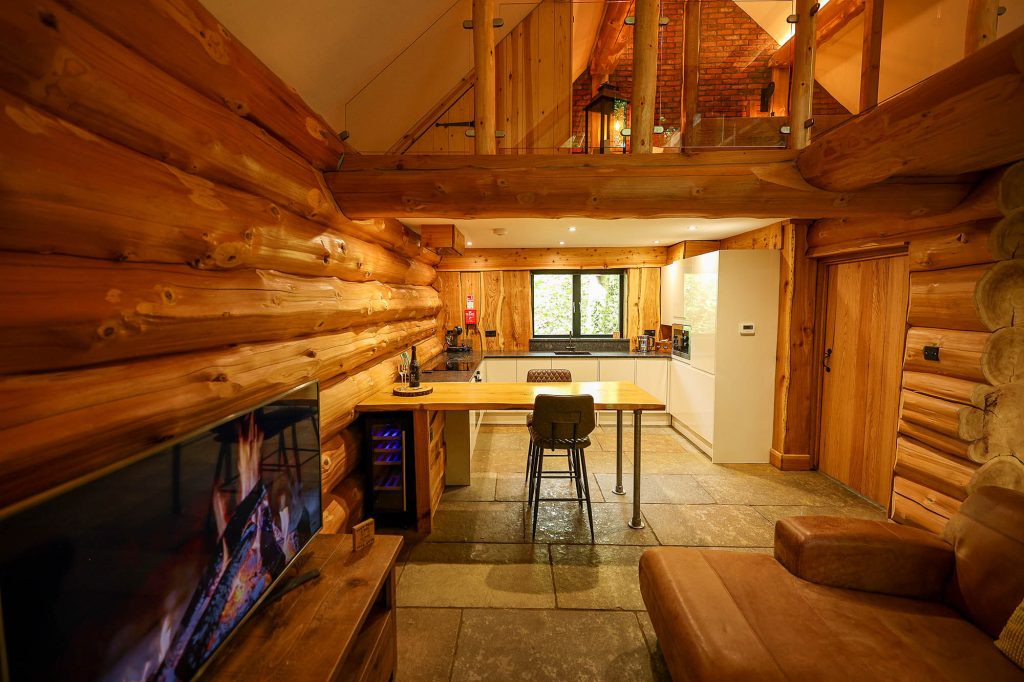Downstairs you will find an open plan kitchen and living area with log burner and a luxury bathroom with complementary Molton Brown toiletries, double sinks and a walk in rainforest shower for two.