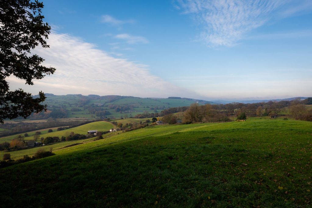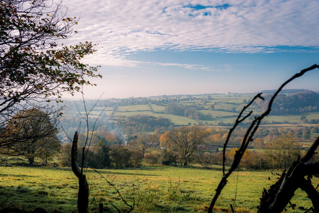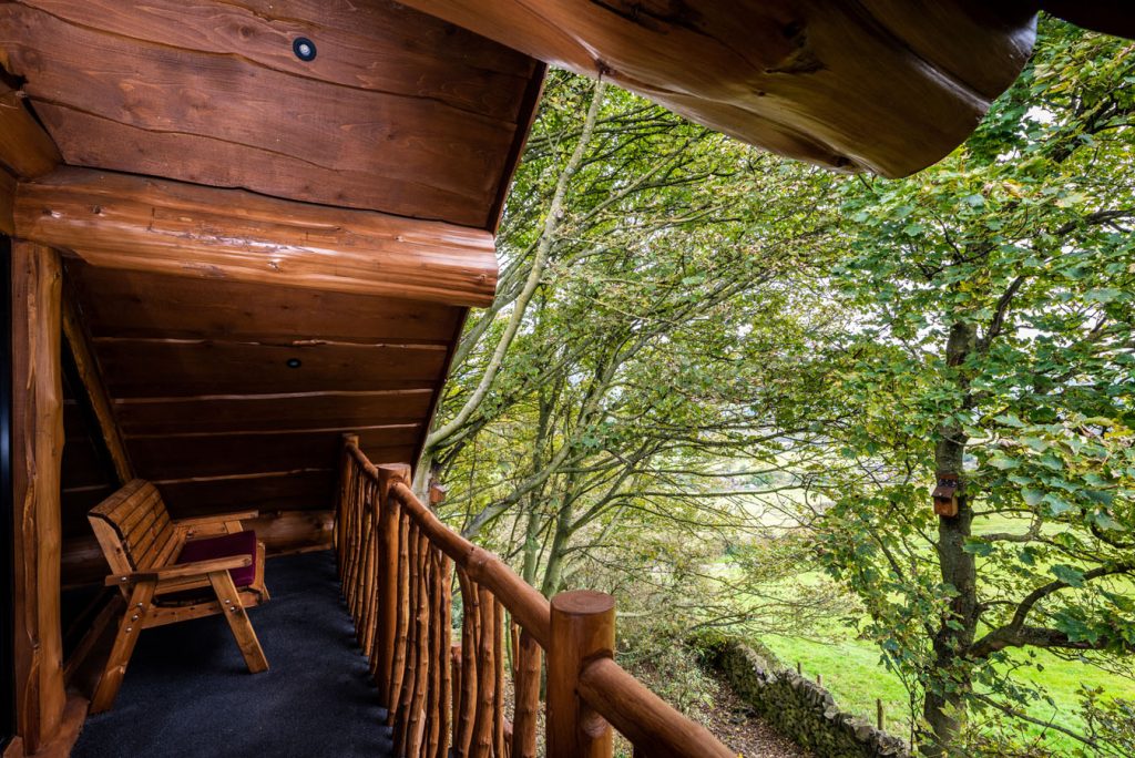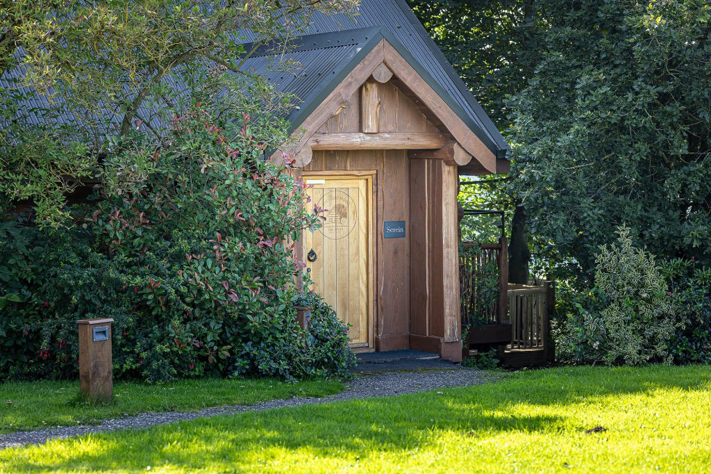 Serein is a two storey rustic log cabin that sleeps two adults with countryside views overlooking the Derwent Valley.