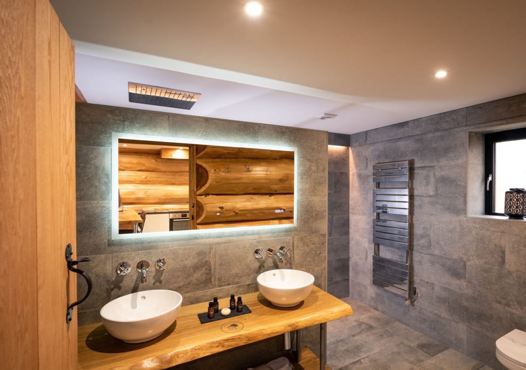 Downstairs you will find an open plan kitchen and living area with log burner and a luxury bathroom with complementary Molton Brown toiletries, double sinks and a walk in rainforest shower for two.